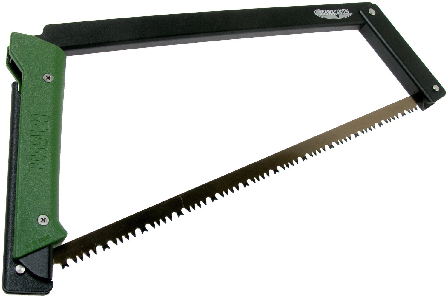 Emportez avec vous cette scie pliante Agawa Boreal21 lors de toutes vos aventures outdoor. Elle vous servira en camping, backpacking, pendant la chasse ou au jardin. Une fois fermée, la scie est complètement pliée dans son cadre afin de vous protéger à vous et au matériel. Fermée, cette scie légère mesure seulement 54,6 cm de long et 5 cm de haut. Vous pouvez donc la prendre sans souci avec vous. Gardez cependant en tête que même si elle semble compacte, vous portez tout de même sur vous une scie multifonctions avec une lame de 53,3 cm. Son lock en nylon renforcé de fibre de verre situé à l’arrière de la lame ajuste automatiquement la bonne tension afin d’optimiser à chaque fois la coupe.