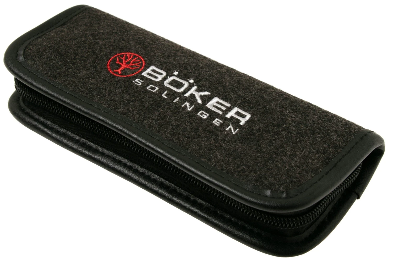 Le Böker Barlow M4 Sherman Damascus est un couteau de gentleman classique. Son design est traditionnel et relativement passe-partout. Le design Barlow a été repris par de nombreuses marques depuis des années. Mais peu arrivent à créer des Barlow aussi superbes que ceux de Böker. La lame s’ouvre à deux mains et le mécanisme slipjoint apporte une résistance pour éviter que la lame ne se referme. Ce couteau est livré dans un bel étui de rangement en feutre.