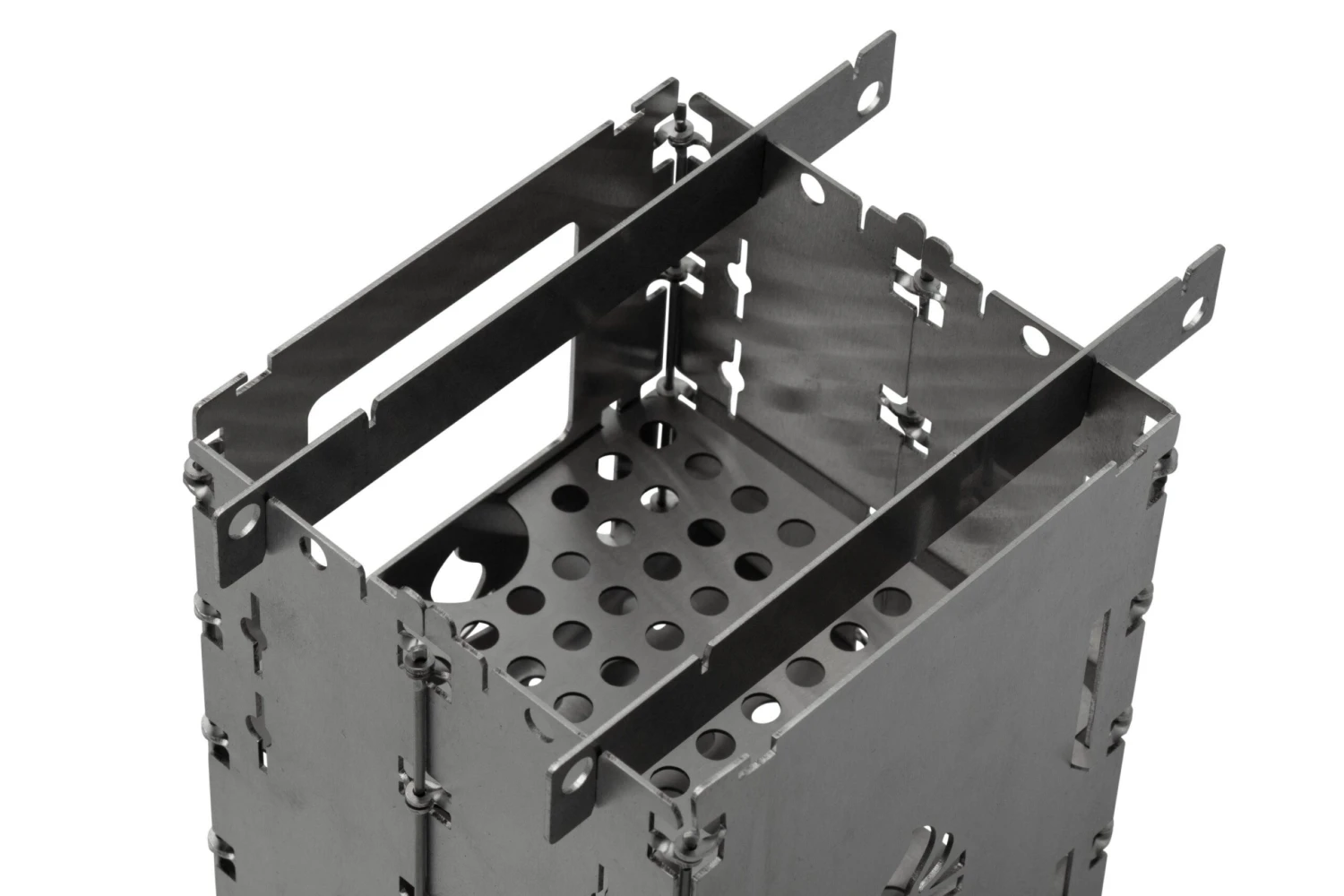 Le Bushcraft Essentials Bushbox LF Set est un kit complet avec un réchaud, une grille de cuisson et un solide sac de rangement. L’avantage de ce réchaud, c’est qu’il est très facile à monter. Il suffit de le déplier ! En 10 secondes seulement, le réchaud est monté et vous pouvez vous attaquer au feu. Pour cuisiner, il ne vous faudra que très peu de matériau inflammable, car l’entrée d’air est très efficace. Et ce, tout en protégeant correctement le feu du vent sur les côtés. Ce Bushbox fonctionne avec des branches ou de la biomasse, mais on peut aussi l’utiliser avec un brûleur à alcool (par exemple Trangia), des blocs Esbit, du charbon, etc.