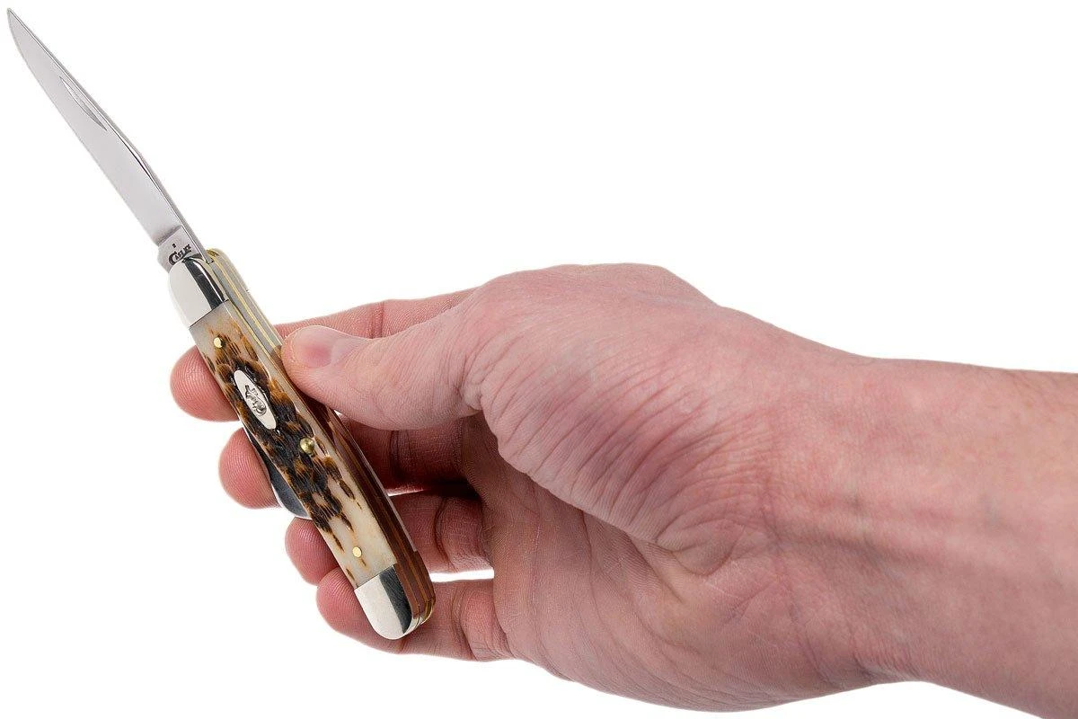 Le Case Medium Stockman est un véritable classique dans le monde des couteaux de poche. Ce modèle est presque aussi vieux que l’ensemble de la catégorie traditionnelle elle-même. Ce Case Stockman est une incarnation très pure de ce modèle classique. Il a trois lames : une lame clippoint comme lame principale , une lame sheepfoot de 5,0 cm et, bien sûr, la lame Spey, qui est presque indispensable pour un Stockman. A l’origine, il s’agissait d’une forme de lame qui était utilisée pour dépeçage.