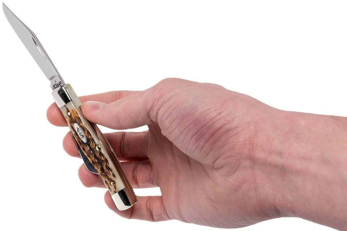 Le Case Medium Stockman est un véritable classique dans le monde des couteaux de poche. Ce modèle est presque aussi vieux que l’ensemble de la catégorie traditionnelle elle-même. Ce Case Stockman est une incarnation très pure de ce modèle classique. Il a trois lames : une lame clippoint comme lame principale , une lame sheepfoot de 5,4 cm et, bien sûr, la lame Spey, qui est presque indispensable pour un Stockman. A l’origine, il s’agissait d’une forme de lame qui était utilisée pour dépeçage.