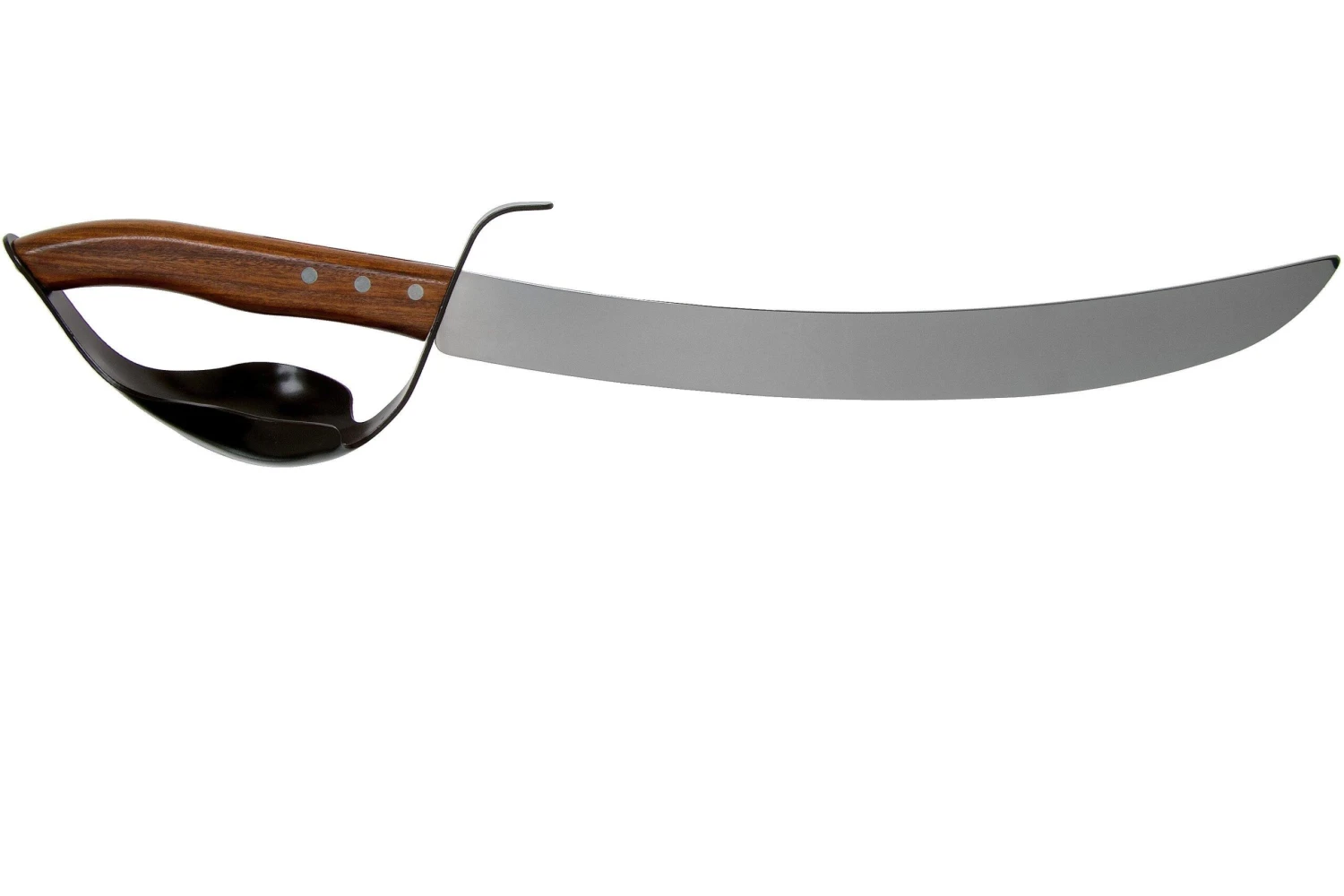 Ce superbe sabre à champagne Claude Dozorme a été fabriqué à la main à Thiers, la capitale française de la coutellerie. L’élégant design français va très bien avec le bois de palissandre et donne un charme fou à ce sabre. La lame est en acier X50CrMoV15. Inoxydable, résistant à l’usure et certainement assez dur pour sabrer une bonne bouteille de champagne. La manche est doté d’un cordon rouge assorti. Touche fort sympathique : ce sabre à champagne est livré dans un écrin en bois, parfait en présentoir.