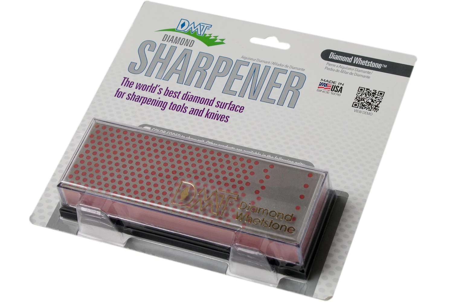 La DMT Machinist Diamond Whetstone Fine est une pierre à aiguiser diamantée pour rétablir le tranchant de couteaux ou d’outils émoussés. Sa base solide en plastique très haute vous offre suffisament de place pour vos mains pendant l’aiguisage. La boîte de rangement en plastique protège la surface abrasive quand vous ne vous en servez pas. C’est bien pratique quand on travaille dans un atelier avec beaucoup de matériel.