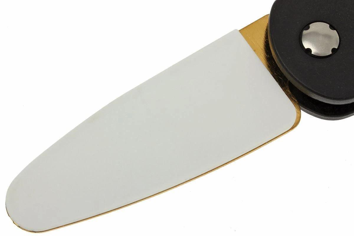 L’outil Flipstone est une pierre à aiguiser repliable qui peut être utilisé des 2 côtés. Les dimensions sont comparables à celles d’un couteau de poche. La FS4 est un petit peu plus grande que le FS3. On peut donc toujours l’avoir avec soi. La face jaune est une pierre en diamant avec une granulométrie de 25 micron. Elle sert à rétablir le tranchant d’une lame. L’autre face en céramique donne un tranchant maximal. Les deux pierres sont collées l’une à l’autre et donc toujours solidaires..