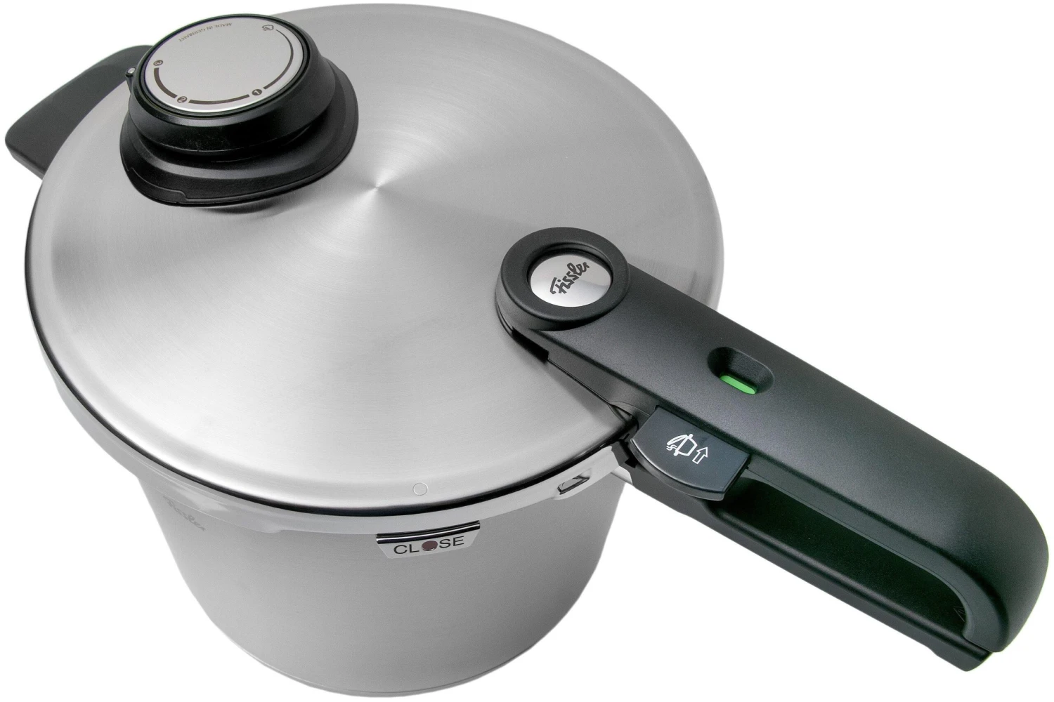 Cet autocuiseur Fissler Vitavit Premium a un diamètre de 22 centimètres. Il peut contenir jusqu’à 6 litres. Il est doté d’une fonction cuisson à vapeur, avec panier vapeur inclus.