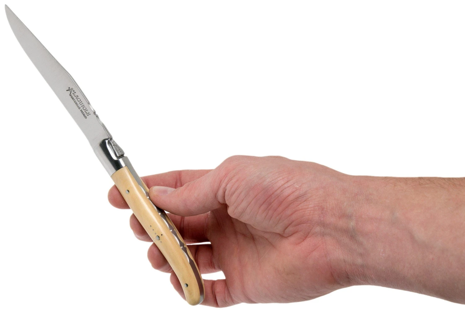 Ce set de couteaux à steak Fontenille Pataud est composé de deux couteaux de table Laguiole avec manche en buis. Il s’agit d’une essence claire à la structure très agréable. Le buis n’est disponible que de petite taille et en petite quantités, cela en fait une essence coûteuse. On remarque sur le manche la ‘Croix du berger’ traditionnelle qui le décore. Cette croix, formée par des rivets trouve son origine dans la tradition catholique. Elle permettait aux bergers de prier lorsqu’ils étaient loin de leur village et donc d’une église ou d’une chapelle. En enfonçant la lame dans le sol ou dans une miche de pain, ils positionnaient le couteau à la verticale, et la croix servait pour la prière.