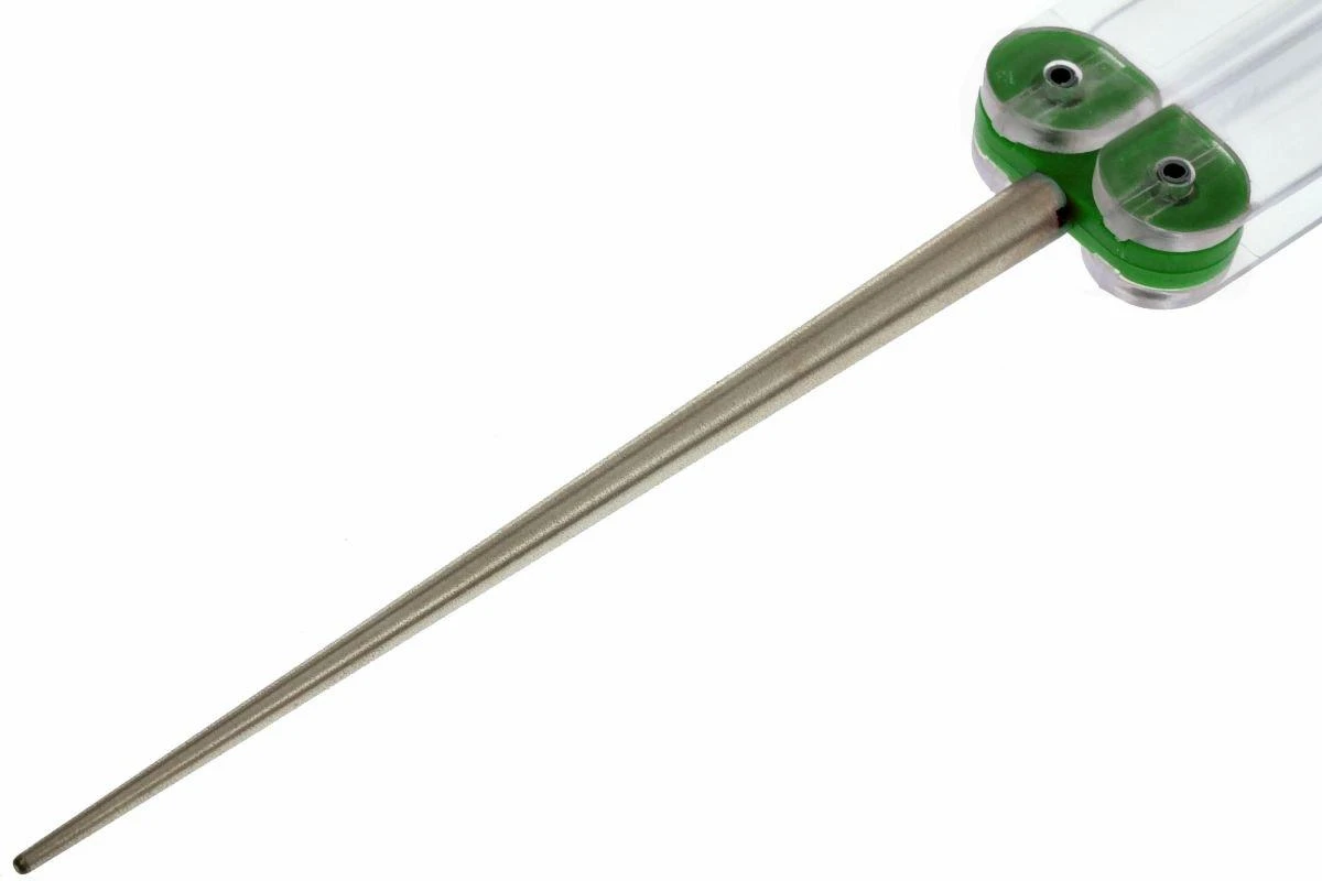 Comme les pierres à aiguiser Diafold, ce fusil à aiguiser diamant conique est construit sur le principe des couteaux papillon. En position fermée, le manche fait office de protection du fusil. Une fois déplié, le manche est très pratique pour aiguiser.