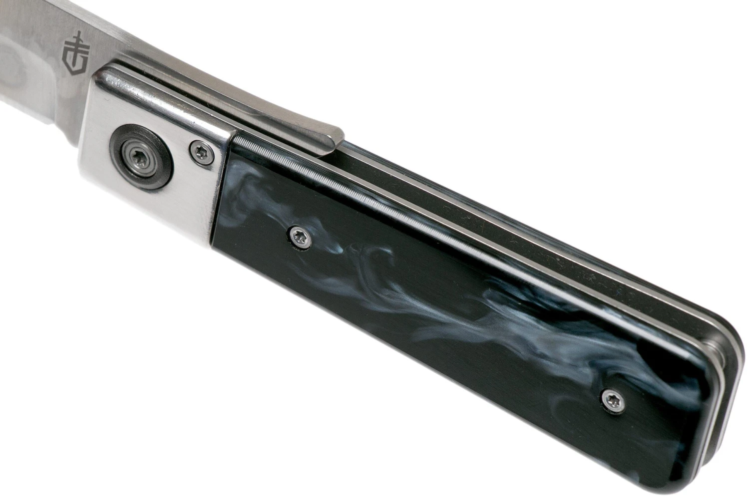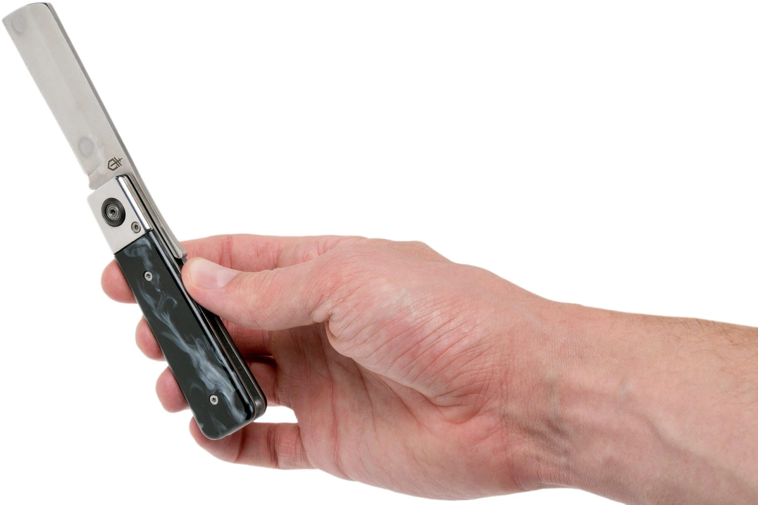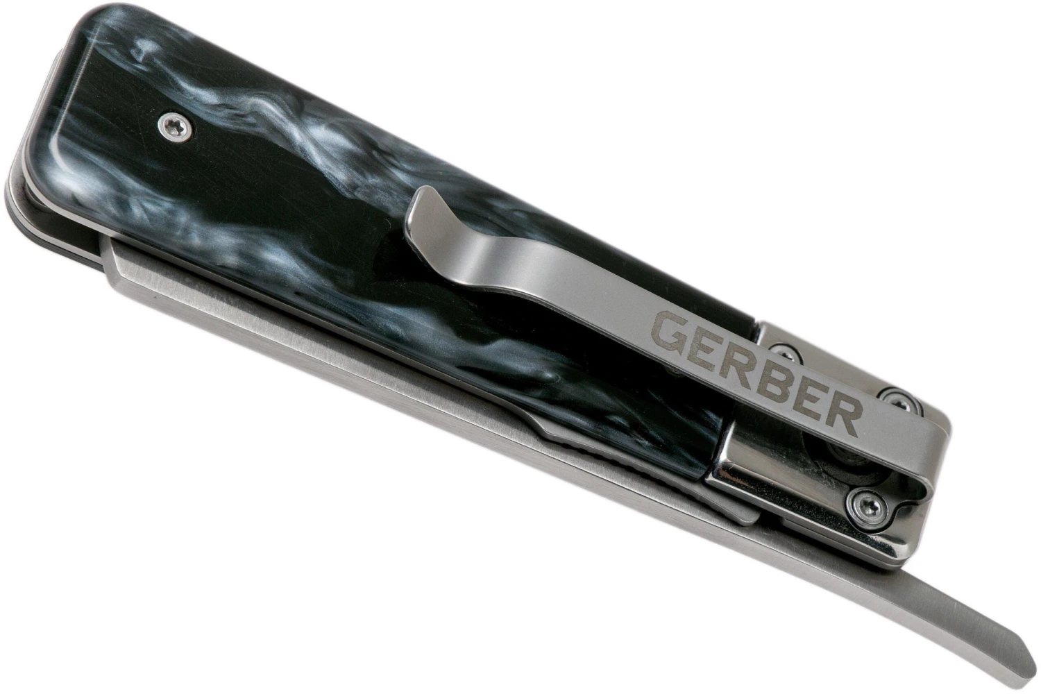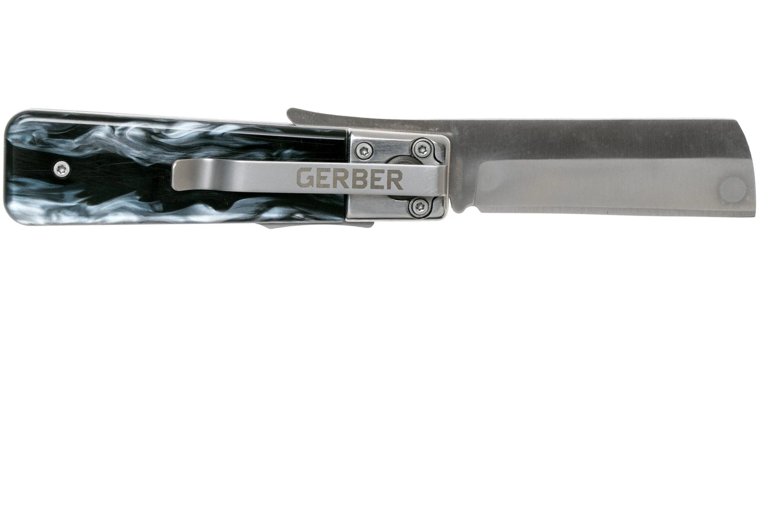 Le Gerber Jukebox est un excellent couteau de poche EDC avec un look très retro. Tout dans ce couteau fait référence aux rasoirs coupe-choux. Le mécanisme d’ouverture de la lame par exemple. Le front flipper ressemble énormément à celui d’un coupe-choux. La longueur de la lame, comparé au manche est également très similaire.