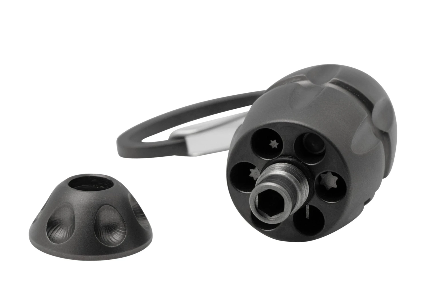 Le LionSteel Eggie est un accessoire de qualité à accrocher à votre trousseau de clés. On l’utilise pour beaucoup de choses. Il s’agit en fait d’un multitool ! Ou d’un porte-embouts, si vous préférez. L’Eggie est équipé de plusieurs outils, tels que des tournevis torx, une lame de couteau et un brise-vitre. Il peut vous servir à dévisser la vis de charnière de votre couteau de poche, ou à ouvrir un emballage.