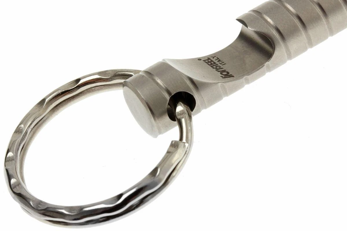 Joli porte-clés avec ouvre-bouteilles et casse-verre en carbure de tungstène. En plus, l’Eskaper est possible à l’emploi comme un kubotan, une petite arme de défense personnelle.