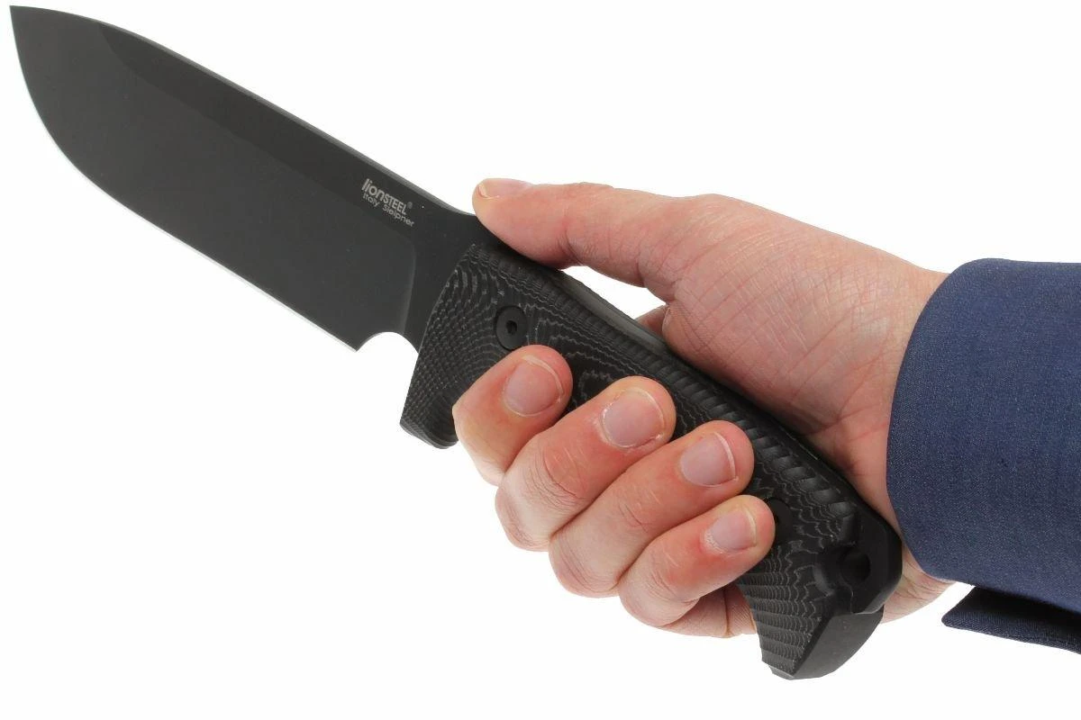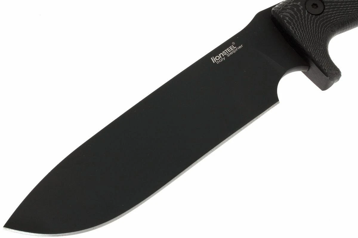 Le M7 est un couteau à lame fixe polyvalent destiné à une utilisation Outdoor. Ce couteau est basé sur une édition limitée conçu en collaboration avec le coutellier Michele ‘’Molletta’’ Pensato : le Carthago. Après quelques modifications, le M7 est né : un couteau avec une lame full tang et un manche en micarta. Le manche est largement assez grand pour l’intégralité de votre main. Un jimping a été ajouté pour une meilleure adhérence et un meilleure contrôle de la lame. La forme spéciale donnée au revêtement en micarta n’augmente pas seulement l’adhérence du manche mais ce design particulier permet aussi de reconnaitre immédiatement un couteau LionSteel. Ce couteau est unique de par son manche, usinée à partir d’une seule pièce de micarta. Dans un cas classique, deux pièces de micarte seraient fixées au manche par des rivets alors que dans le cas du M7, c’est la lame qui vient s’encastrer dans la pièce en micarta. Ce grand couteau est relativement lourd. La lame en acier Sleipner, mesure, 5,5 mm d’épaisseur. Combiné avec une dureté de 60-61 HRC, ce couteau très masculien est parfait à utiliser dans des condition extrêmes.