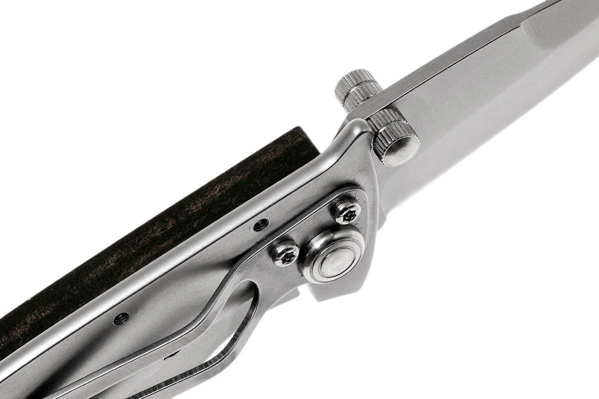 Le Maserin Onefold est un petit couteau de poche spécial, avec un manche trÚs intéressant. Il arbore une face en ébÚne trÚs fine et une en acier pour le verrouillage. Une conception originale, et pourtant trÚs légÚre.