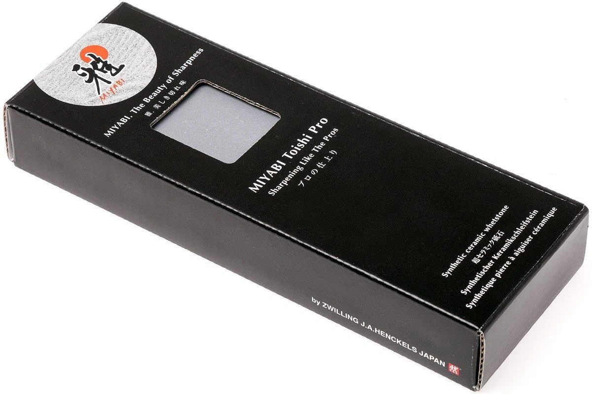 La pierre à aiguiser Miyabi Toishi Pro grain 5000 est une pierre à eau en céramique pour aiguiser et polir vos couteaux (de cuisine). Cette pierre à aiguiser fabriquée au Japon peut durer des années, elle est assez épaisse et dure. Avec sa taille de grain 5000, elle rend vos couteaux tranchants comme des rasoirs. En plus, elle va polir le tranchant pour un joli fini.