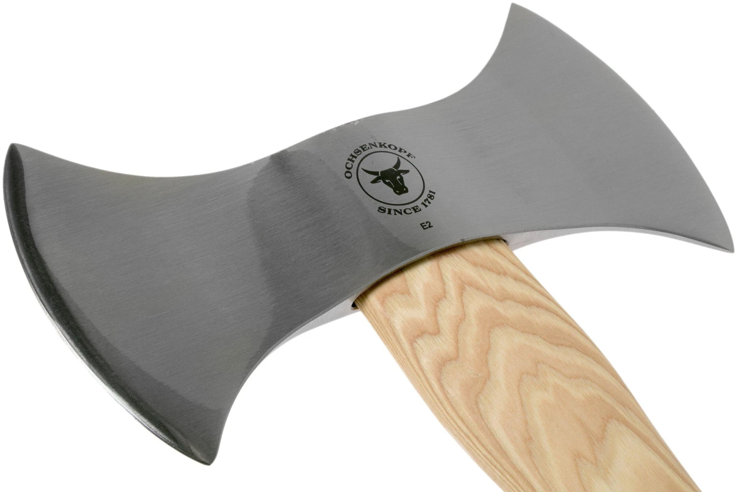La hache de jet Ochsenkopf OX 18 H a été spécialement conçue pour les compétitions. Cette hache a un équilibre parfait pour un lancer optimal. La forme et le design sont conformes aux normes des compétitions et la hache porte un numéro de série croissant. Les arrêtes de coupe sont tranchantes comme des rasoirs et polies. Cette hache est livrée avec un étui en cuir pour protéger les arrêtes.