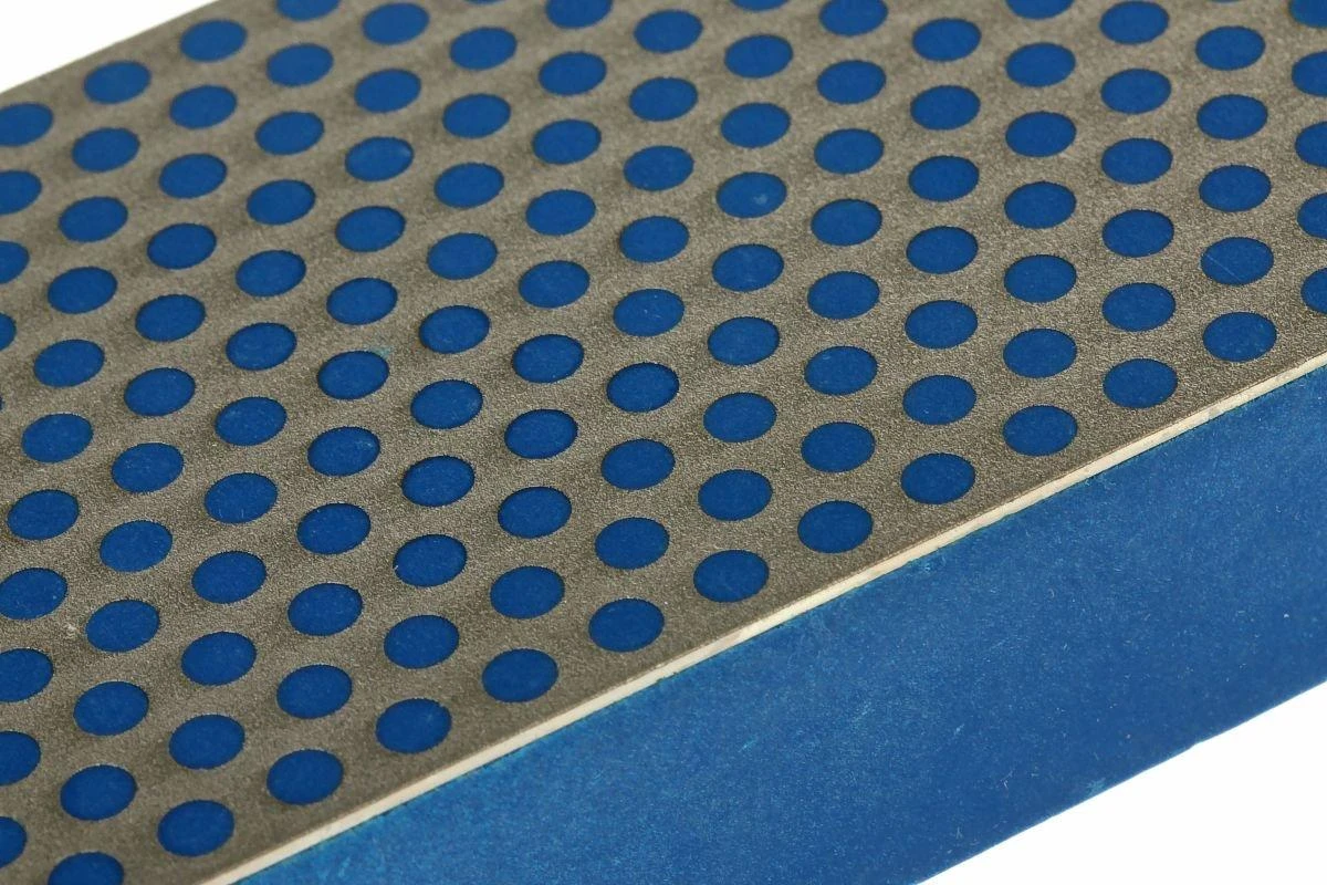 Pierre à aiguiser à la surface d’aiguisage diamantée pourvue du motif à pois caractéristique de DMT. Cette pierre a un grain grossier. Cette pierre à aiguiser est livrée dans un boîtier en bois pourvu de pieds antidérapants.