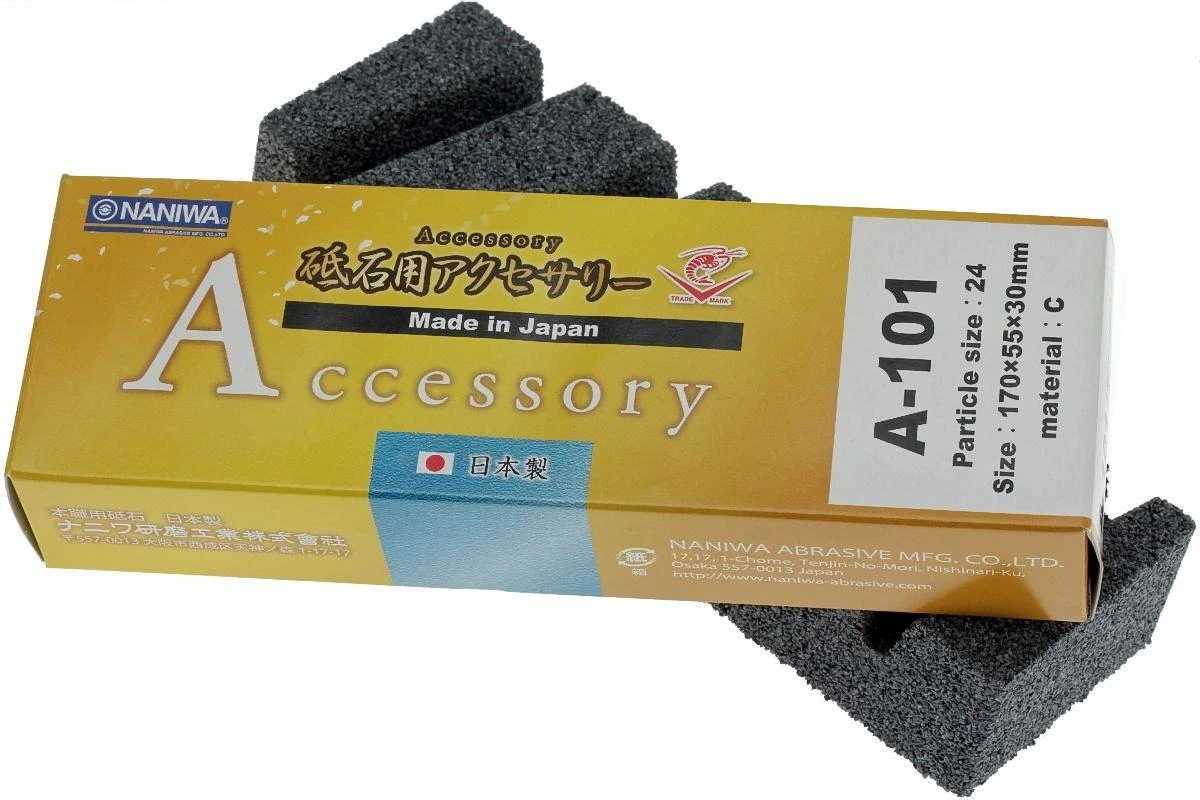 Cette pierre à égaliser sert à aplanir rapidement la surface creusée des pierres à eau. Il suffit de la passer avec un mouvement de va-et-vient sur la surface de la pierre à eau. Il est crucial pour l’aiguisage qu’une pierre à eau présente une surface égale. L’utilisation de poudre à aiguiser ou d’eau n’est pas indispensable.
