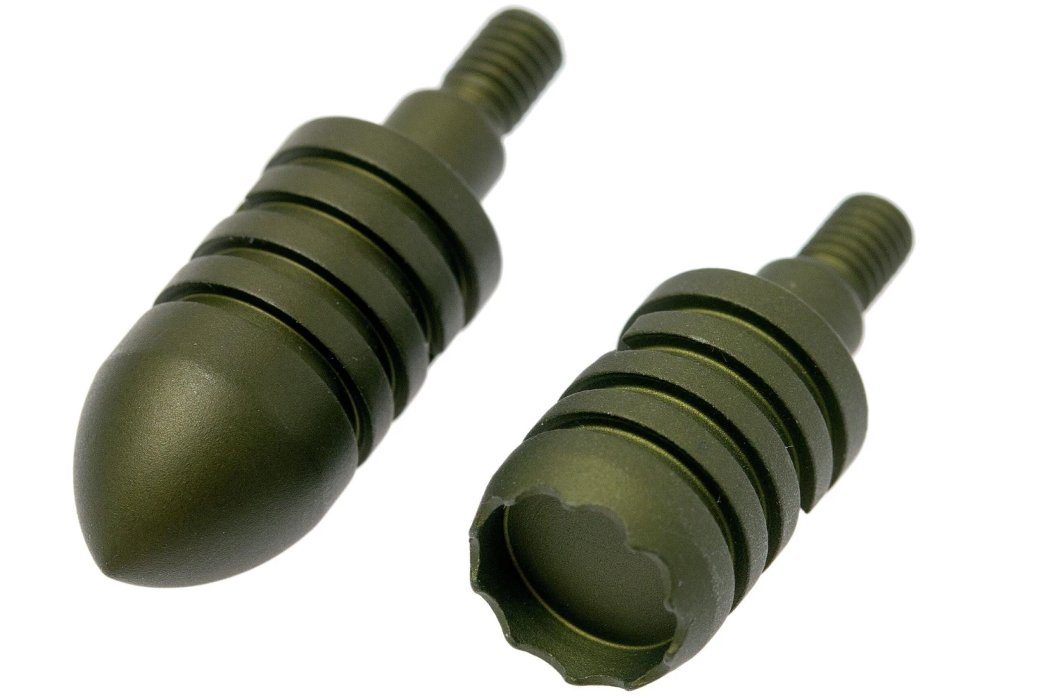 Le Rick Hinderer Extreme Duty Modular Kubotan Pen Deluxe Set est un stylo tactique très fin fabriqué par nul autre que Rick Hinderer. Avec une longueur totale de seulement 15,6 cm et un diamètre de 12,3 mm, ce stylo joue dans la cours des grands. Pour ce qui est de la cartouche, Hinderer a opté pour un remplissage Fisher Space Pen taille U4F. Ce qui est légèrement plus petit que la normale. Ce qui est nécessaire vu les propriétés très modulaires de ce Modular Kubotan. En effet, on peut également l’utiliser comme simple Kubotan, sans les parties qui en font un stylo. Cet ensemble est ainsi constitué de deux embouts différents supplémentaires. De quoi le configurer selon ses goûts et ses humeurs. Pour faciliter la personnalisation du stylo, Hinderer accompagne le tout de deux clés permettant de dévisser et visser les pièces. Une clé inbus est également incluse pour changer la cartouche.