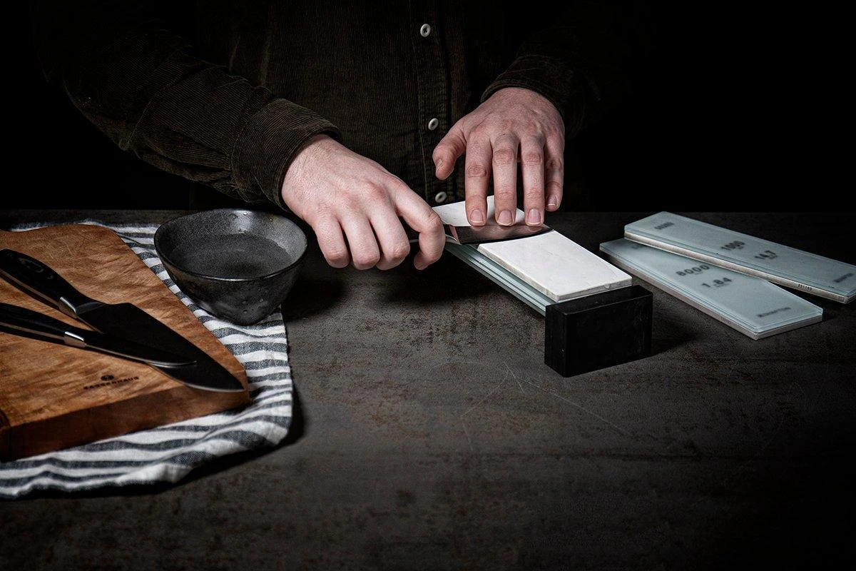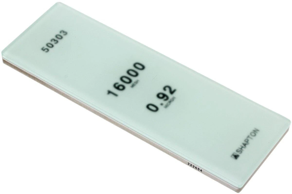 La Shapton Glass Stone granulométrie 16000 compte clairement parmi les plus fines. Avec elle, on élimine la moindre petite rayure ou irrégularité sur le tranchant. On obtient un tranchant miroir lisse et couper se passe en souplesse. La pierre à aiguiser aiguise vite et de façon régulière. Exactement ce qu’on attend d’une pierre à aiguiser de haute qualité. Contrairement à ce que leur nom pourrait laisser entendre, on n’aiguise pas sur du verre. Mais sur une pierre à aiguiser japonaise de haute qualité. Cette dernière est en réalité montée sur une plaque de verre trempé afin de ne pas se déformer.