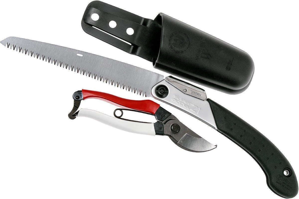 Cet ensemble de taille japonais contient le sécateur Okatsune KST103 et la scie pliante Silky Super Accel 21 ainsi qu’un étui pratique.