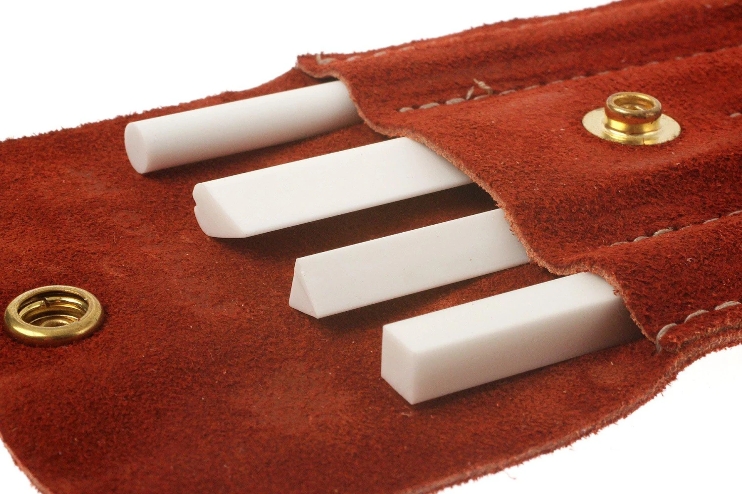 Le set de fusils d’aiguisage fins en céramique Spyderco, 400F est un ensemble de 4 fusils d’aiguisage en céramique fins, livrés dans un fourreau en cuir.