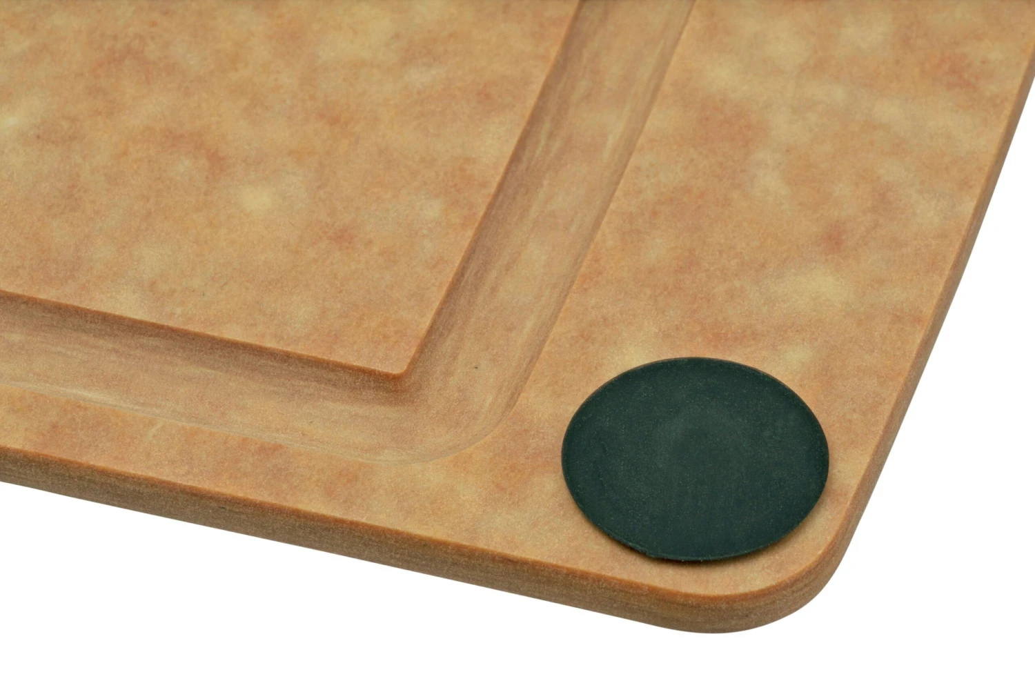 Cette Victorinox All-in-one 7.4126 est une planche à découper de 37 cm de large sur 28,5 cm de long. Elle est faite en Richlite marron. Un matériau composé d’un mélange de 65% de pulpe de bois certifiée FSC et de 35% de résine phénolique. Cela donne une planche mince avec une surface lisse non poreuse, sans BPA, résistante à la chaleur et surtout hygiénique. Ce matériau est suffisamment souple pour ne pas détériorer le tranchant des couteaux tout en étant assez dur pour ne pas être entaillé trop profondément.