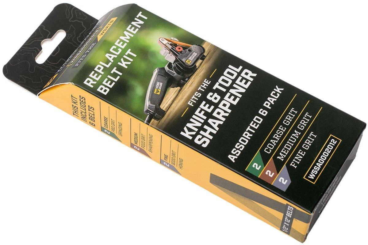Ce Work Sharp Knife & Tool Sharpener Replacement Belt Kit est un accessoire de rechange conçu pour le Work Sharp Knife & Tool Sharpener. Ce set contient six bandes d’aiguisage de granulométrie Coarse (P80), Medium (P220) et Fine (6000).