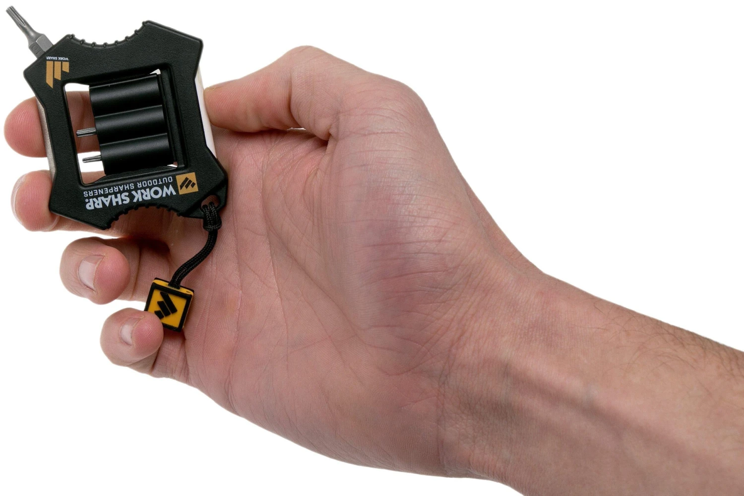 Le Work Sharp Micro aiguiseur à couteaux et bit set (3 pièces), WSEDCMCR combine dans un objet compact un aiguiseur à couteaux et un outil très pratique. Le Work Sharp Micro est pourvu d’une pierre à aiguiser diamantée moyenne d’un côté et d’une pierre à aiguiser céramique fine de l’autre. Comme les pierres à aiguiser sont arrondies, elles permettent d’aiguiser toutes les formes de lames. Depuis les simples couteaux de poche jusqu’aux karambit. Des guides sont positionnés aux extrémités des pierres à aiguiser permettant d’aiguiser suivant un angle de 25 degrés.