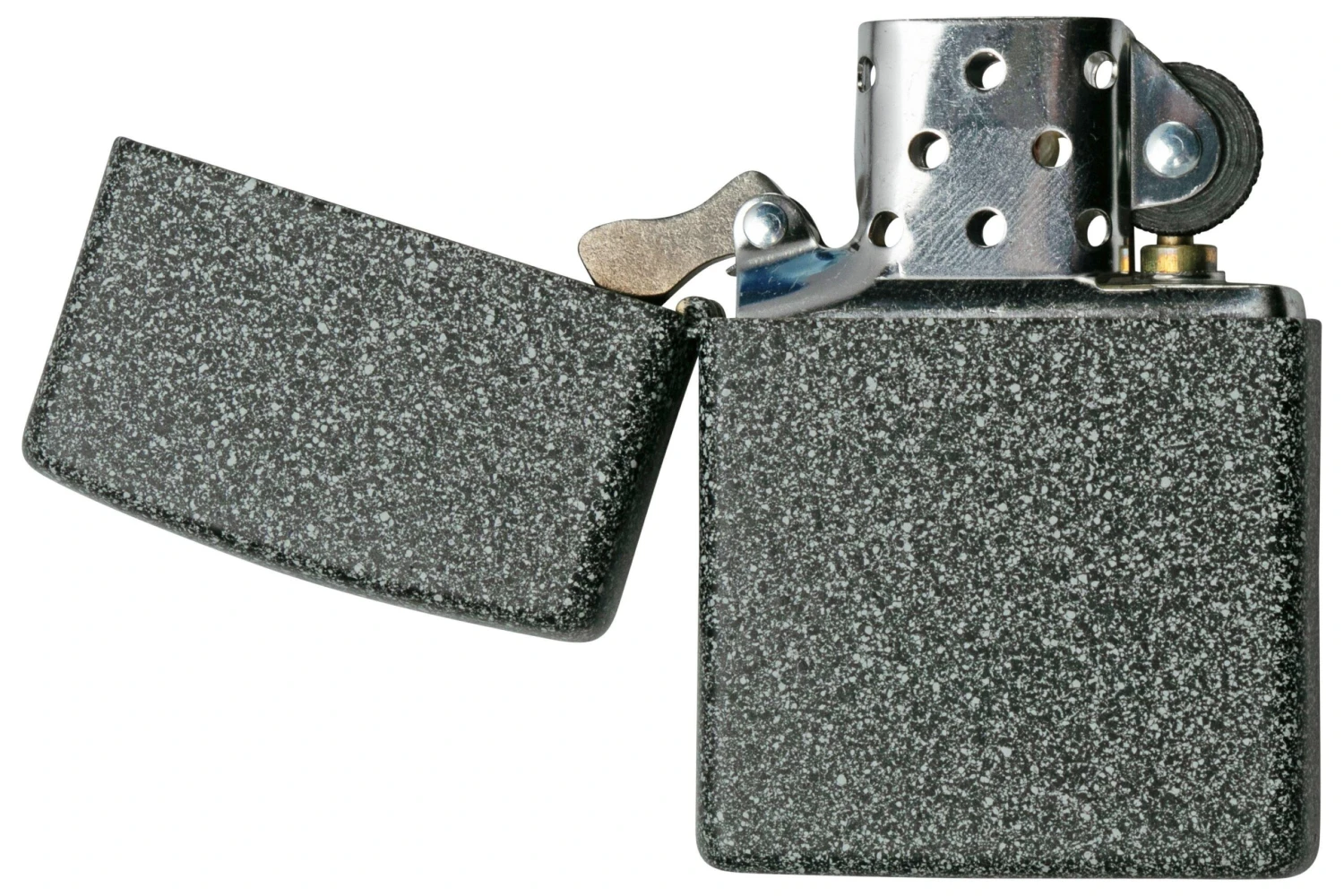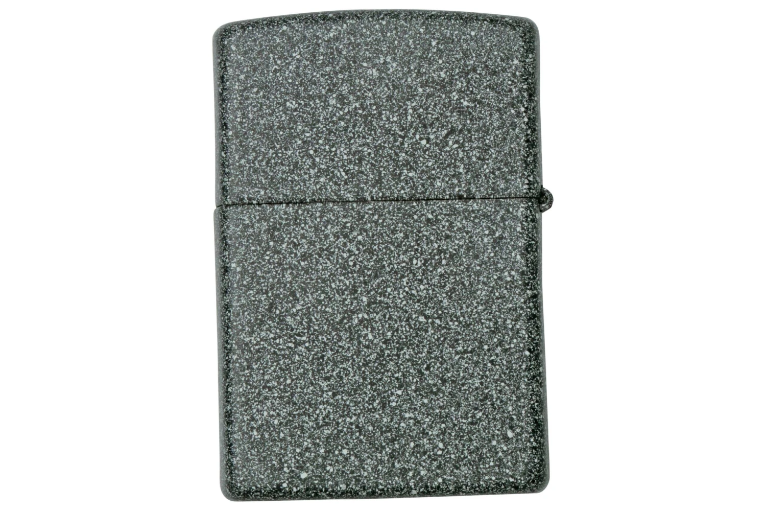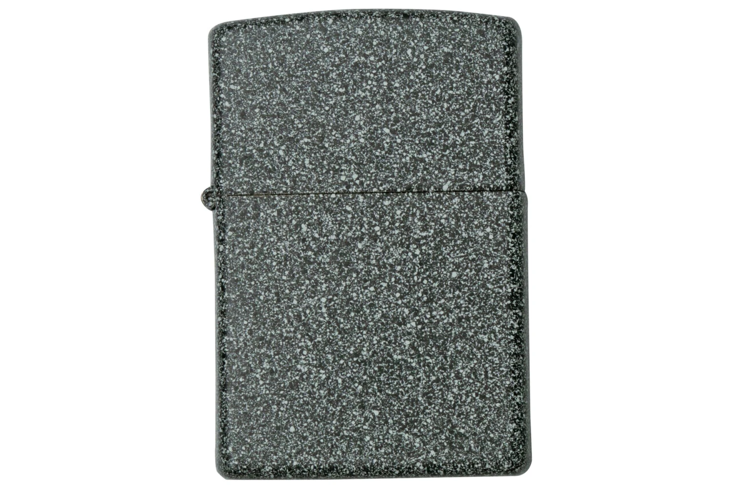 Ce briquet Zippo Iron Stone est noir et blanc, et ressemble Ă une pierre. Il est tout lisse.